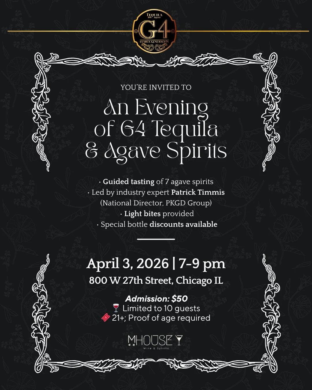 Join us for an intimate and elevated tasting experience featuring the G4 Tequila and agave spirits led by industry expert Patrick Timmis (National Director, PKGD Group). This guided tasting will take you through the craftsmanship, heritage, and flavor profiles behind one of the most respected names in tequila.